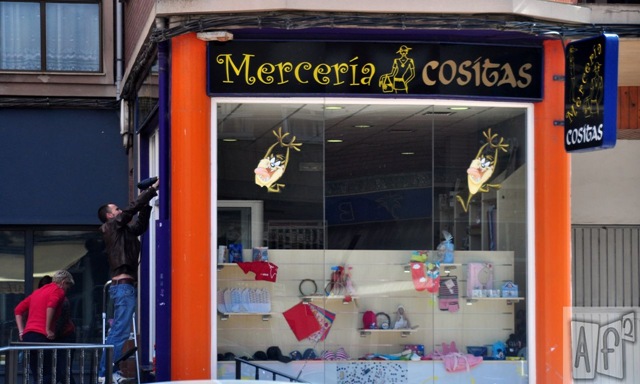 Aunque de momento tienen pocas “cositas”, esperan ofrecer al público, como bien dice el cartel, artículos de: merecería, manualidades (relacionados con las labores), zapatillas para niños, etc. y pasado un tiempo contarán con talleres.