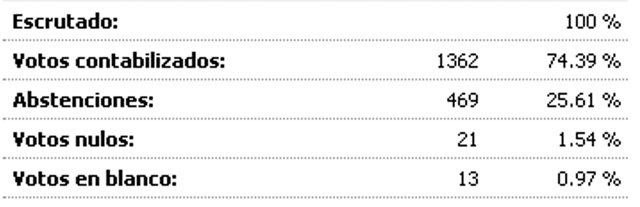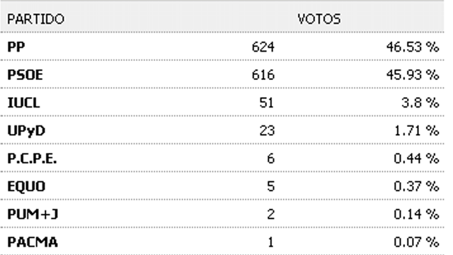 El PP obtiene 624 votos por 616 el PSOE