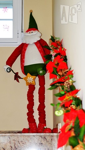 La mayoría de los adornos son de creación propia. Este año -parece- que se inspiró en el dúo cómico Laurel & Hardy, (El gordo y el flaco) para decoración. En el interior, por mor de estar más flacucho, metió en el descanso de las escaleras a Laurel y en el exterior junto al pozo, vigilado por un enanito, a Hardy.