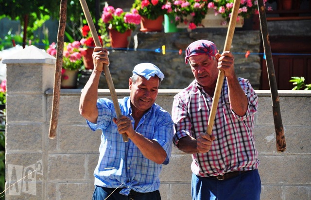 Una vez extendidos los 21 mollos, que habían sido traídos de la Parediña, las personas mayores empezaron a realizar los “trabajos” agrícolas y a levantar “puxa” mientras los niños se divertían con juegos tradicionales.