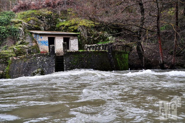 El caudal del Burbia hace subir el agua hasta el séptimo escalón de la terraza de la Bomba