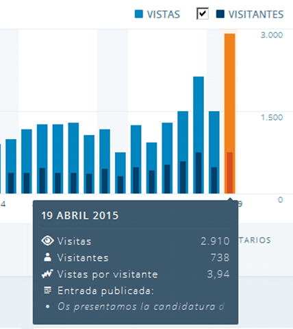 El post: “Os presentamos la candidatura de “Coalición por el Bierzo” a la alcaldía de Toral de los Vados” a punto de superar en el día las 3000 visitas en el blog.