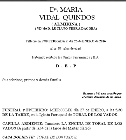 Mis condelencias a su familia,forma parte de mis años de niñez,de mi Ferradal del Alma.Y aunque una sepa que es ley de vida,enterrar antes a nuestro mayores,no por eso «» duele»» menos. Cargando... Responder