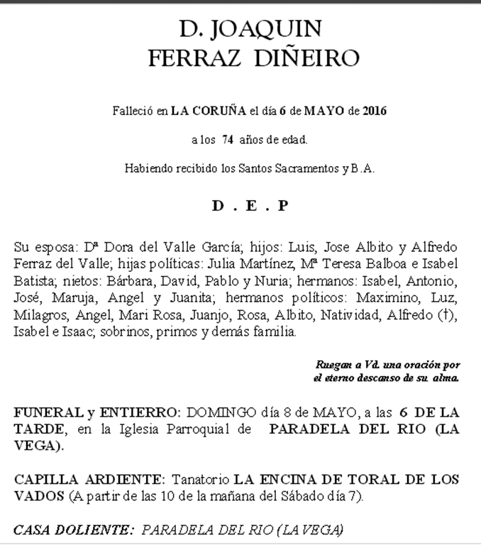 Un abrazo muy grande para Dorita,, y para vosotros Luis , Jose , Fredi , mi mas sentido pesame ,Quino te hecharemos de menos….Los buenos se nos van y con ellos una parte de nuestro corazon ..D:E:P.