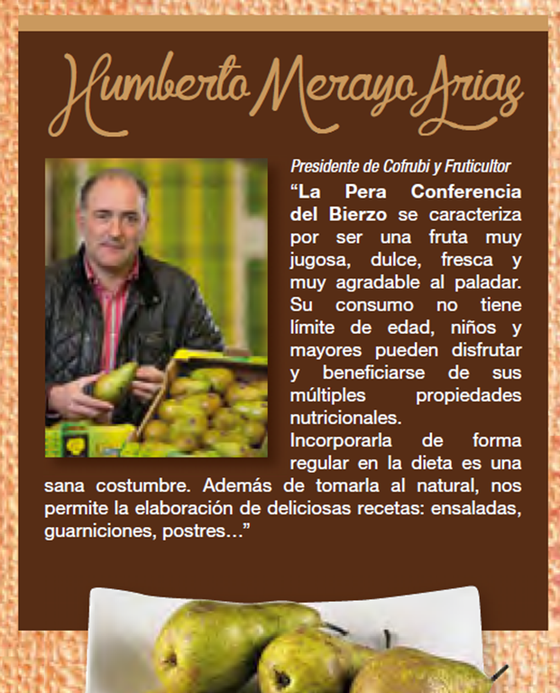 El vecino de Toral de los Vados, Humberto Merayo Arias (Berto) , actual Presidente de Cofrubi y Fruticultor es protagonista , en la sección “Lo Mejor de nuestra Tierra”, del folleto de Supermercado“GADIS”, en el cual ensalza las excelencias de la Pera Conferencia.
