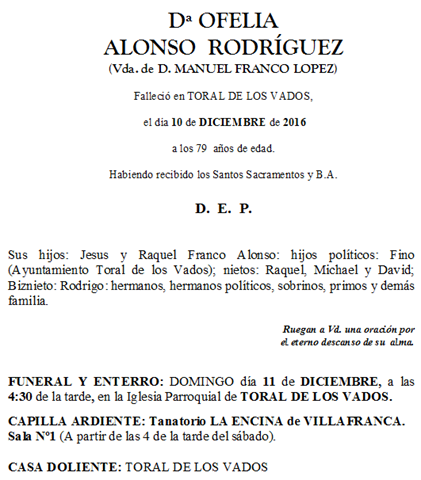 MI MÁS SENTIDO PÉSAME PARA TODA TÚ FAMILIA OFELIA, EN ESPECIAL PARA TI SUSO