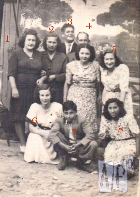 1Felcitas 2 Antonia madre de Paco 3Melchor 4Isidro padre de Paco 5 Maria Luisa 6 Gina hermana de Paco 7Paco 8 Esther Peidan