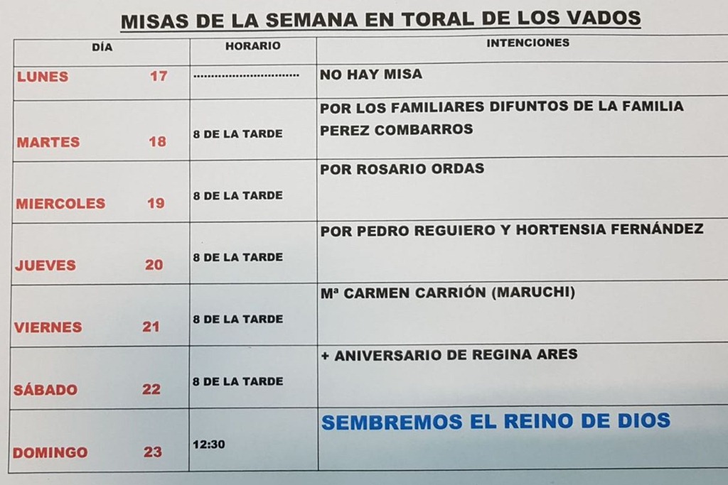 Cosas de la Iglesia Misas semana 29 By AF2Toral on 15 julio, 2017 • ( Leave a comment ) Comparte esto: Comparte en Facebook (Se abre en una ventana nueva) Facebook Compartir en WhatsApp (Se abre en una ventana nueva) WhatsApp Más Compartir en Instagram (Se abre en una ventana nueva) Instagram Me gusta esto:Me gusta Cargando... Categories: Cosas de la Iglesia