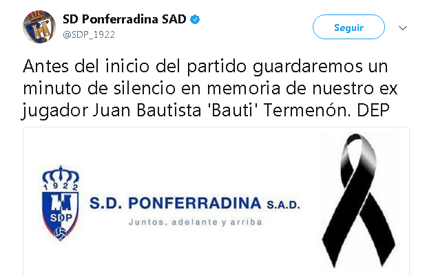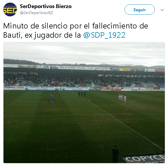 Sin categoría La Ponferradina en su partido contra el Rayo Majadahonda, guardó un minuto de silencio en memoria de Bauti By AF2Toral on 10 septiembre, 2017 • ( Leave a comment ) Comparte esto: Comparte en Facebook (Se abre en una ventana nueva) Facebook Compartir en WhatsApp (Se abre en una ventana nueva) WhatsApp Más Compartir en Instagram (Se abre en una ventana nueva) Instagram Me gusta esto:Me gusta Cargando... Categories: Sin categoría