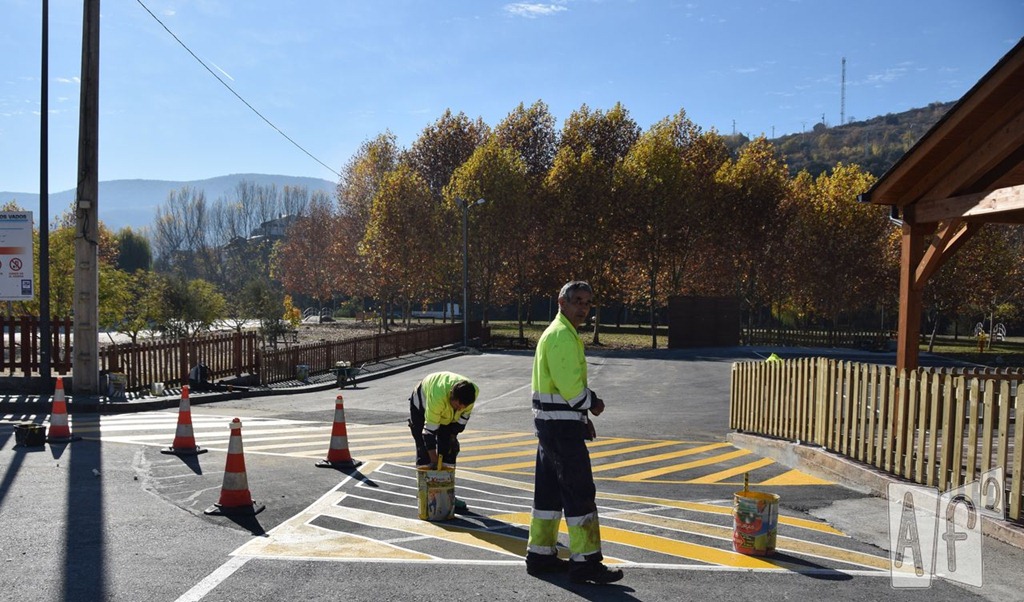 Empleados del Ayto de Toral de los Vados estaban esta mañana pintando isletas en la zona de la playa fluvial.