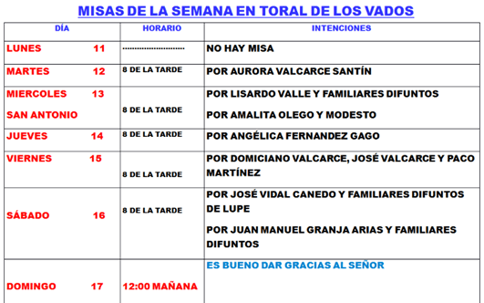 Cosas de la Iglesia Misas Semana 24 By AF2Toral on 9 junio, 2018 • ( Leave a comment ) Comparte esto: Comparte en Facebook (Se abre en una ventana nueva) Facebook Compartir en WhatsApp (Se abre en una ventana nueva) WhatsApp Más Compartir en Instagram (Se abre en una ventana nueva) Instagram Me gusta esto:Me gusta Cargando... Categories: Cosas de la Iglesia