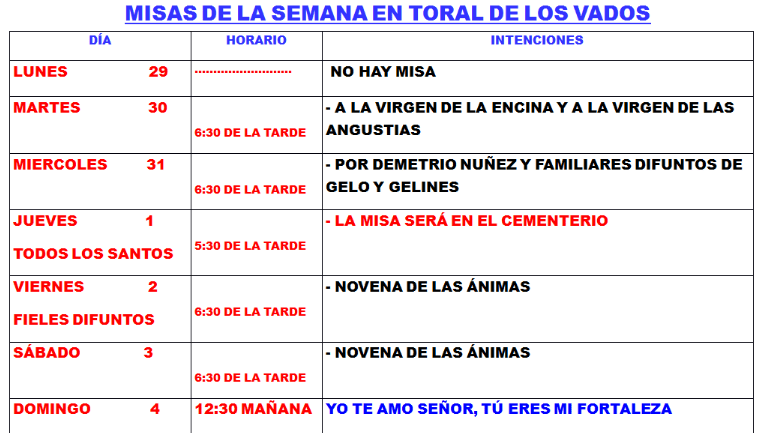 Cosas de la Iglesia El Jueves la misa a las 17:30 h en el cementerio By AF2Toral on 27 octubre, 2018 • ( Leave a comment ) LA MISA DE DIARIO SERÁ A LAS 6:30 DE LA TARDE Comparte esto: Comparte en Facebook (Se abre en una ventana nueva) Facebook Compartir en WhatsApp (Se abre en una ventana nueva) WhatsApp Más Compartir en Instagram (Se abre en una ventana nueva) Instagram Me gusta esto:Me gusta Cargando... Categories: Cosas de la Iglesia