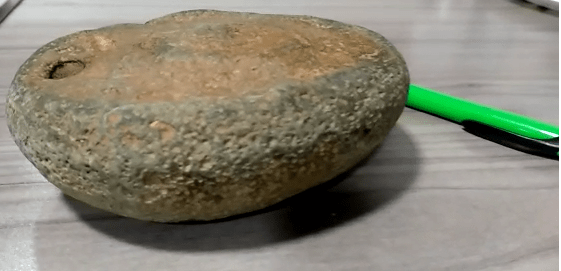 Que según la opinión de un amigo profano le parece un molino de mano bastante antiguo y según a otro amigo docto, a primera vista no se atrevería a decir que no sea nada natural. La naturaleza es así de ‘traviesa’ y a veces genera resultados como este, afirma.