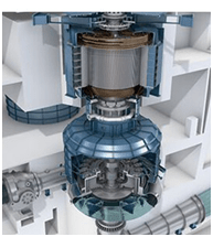 | Inducción Electromagnética | Esquema de Turbina y Generador | Turbina y Generador Acoplados |