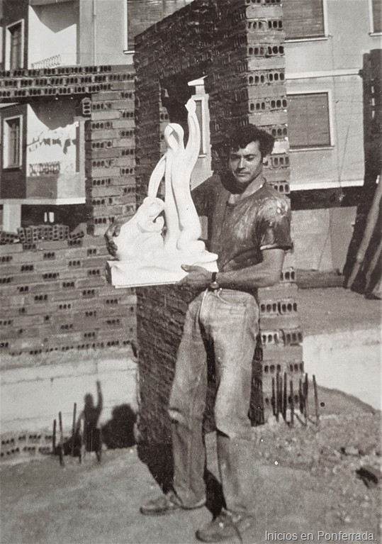 Su primera exposición, como escultor, fue a los dieciséis años. Una colectiva en los salones de la O.J.E.,en Ponferrada, con los pintores: Solana, Sangregorio y Viloria.
